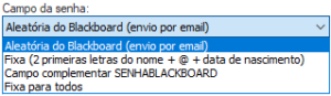- Aleatória do Blackboard: durante a criação, o Blackboard definirá automaticamente uma senha aleatória que será enviada ao usuário por e-mail.