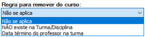 - Não existe na Turma/Disciplina: escolhendo essa opção, se o professor não estiver inscrito na turma/disciplina vigente será suspenso ou removido do curso.