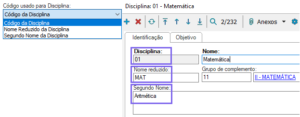 - Código usado para Disciplina: Com as definições do nome, é possível indicar qual será a referência de código a ser extraído do cadastro da Disciplina.