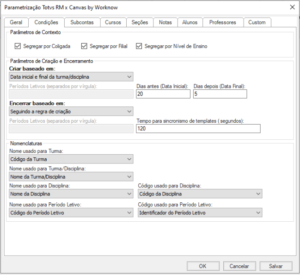 → Estes parâmetros definem quando um curso será criado dentro do Canvas.