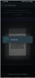 O QR Code aparecerá na sua tela,  para scanear, é necessário ter em mãos o aparelho que o WhatsApp Business está cadastrado.