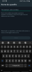 Após isso, seu aparelho estará conectado, e você deverá utilizar apenas o Workchat para responder e iniciar conversas com seus contatos.