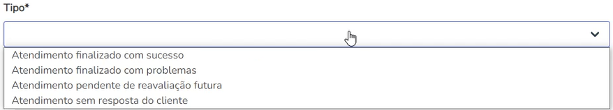 Tipo: o tipo irá definir a característica do motivo de encerramento, como segue: