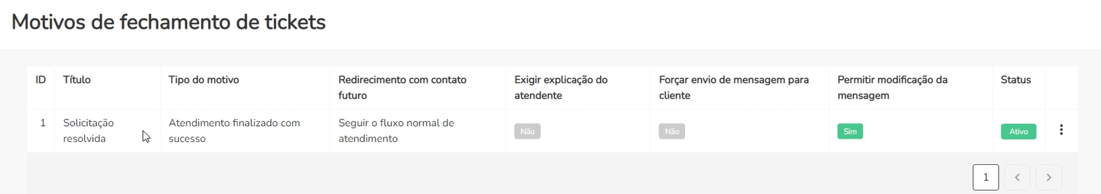 - assim, automaticamente ao encerrar o atendimento, a mensagem cadastrada no campo abaixo (‘Mensagem customizada a ser exibida ao cliente’) é incorporada ao fluxo da conversa.