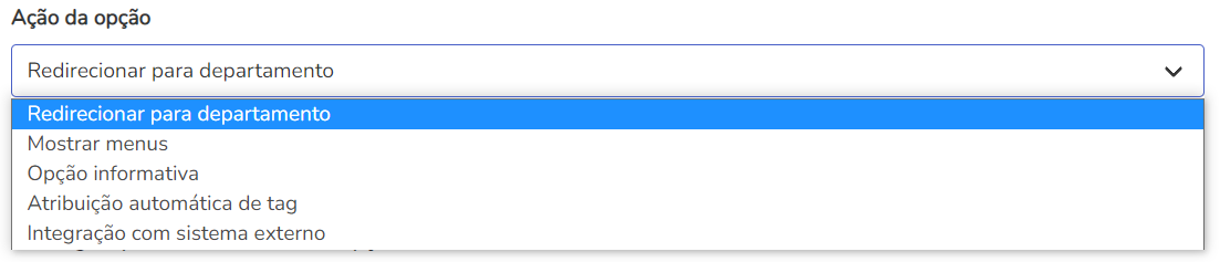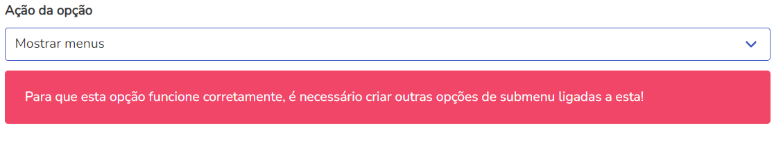 - Mostrar menus: selecionando esta opção, o campo anterior, ‘Opção de menu anterior a esta’, estará disponível para preenchimento. Para garantir seu funcionamento, é crucial definir uma estrutura de menu que conecte diretamente ao serviço desejado.