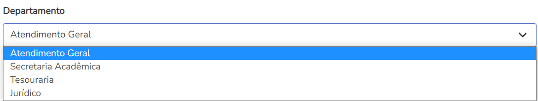 Dessa forma, abre-se a possibilidade de um novo campo para a seleção do departamento em questão: