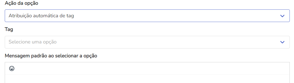 - Atribuição automática de Tag: automaticamente, uma tag é atribuída, acompanhada da opção de enviar uma mensagem padrão.