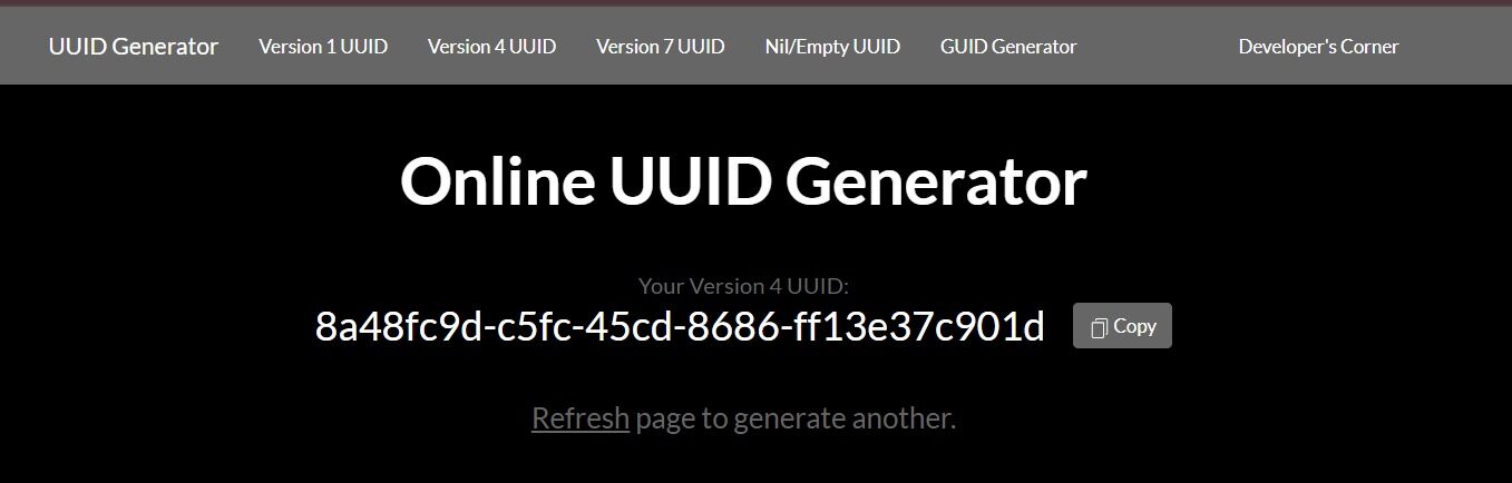 1. Acesse um gerador de UUID (Identificador Único Universal), por exemplo: https://www.uuidgenerator.net/