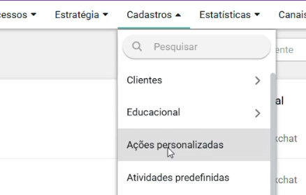 2. Navegue até o menu Ações Personalizadas.