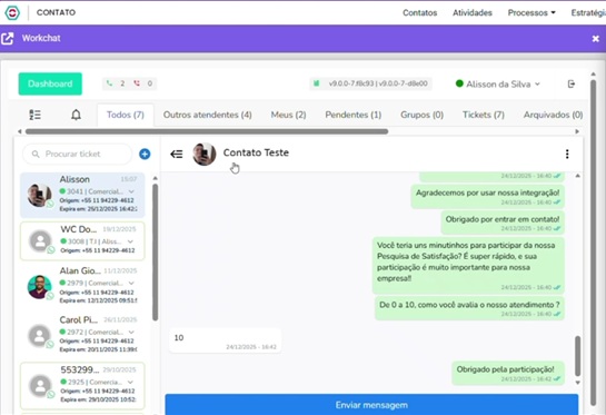 3. Realize um teste operacional para garantir que a comunicação com a Worknow esteja funcionando corretamente.
