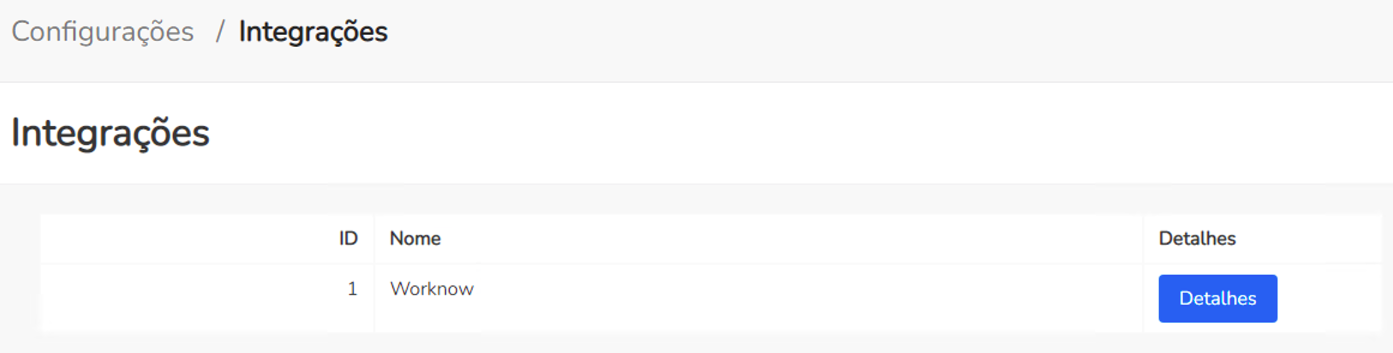 WorkChat > Configurações > Integrações