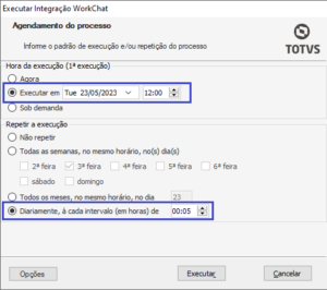 RM.exe > Educacional > Educacional > Worknow > Executar Integração WorkChat