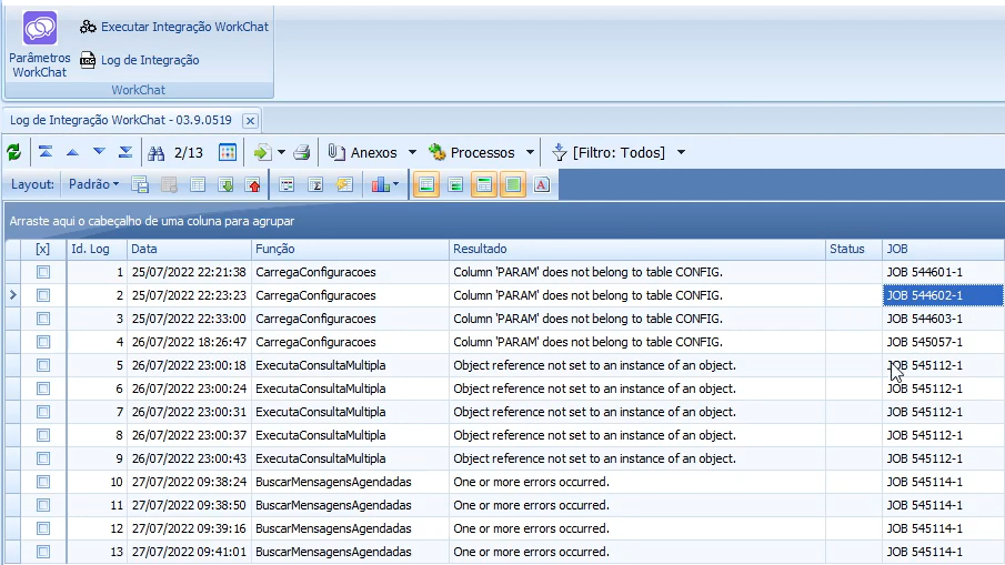 Um dos pré-requisitos para utilizar o Workchat é que a ‘Execução da Integração Workchat’ seja realizada em um ambiente de três camadas ou simulado. Isso é necessário para permitir que o job execute em segundo plano e também para possibilitar o agendamento da execução deste job a cada 5 minutos.