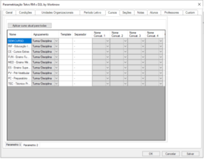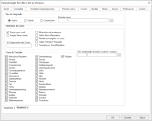 Parâmetros do Cursos é um conjunto de regras que determinam a forma como o curso será criado.