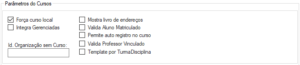 - Valida Aluno Matriculado: ao marcar essa opção, o curso só será criado se existir aluno inserido na turma/disciplina.