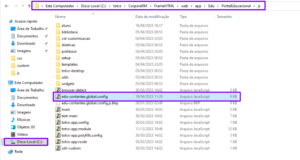 Copie as pastas e arquivos compactados no ZIP baixado para a pasta de instalação do PORTAL do Totvs RM informada abaixo, substituindo os mesmos conforme caminho abaixo: