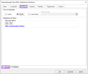- Padrão: selecionando este campo, o processo de integração irá criar a “marca” conforme a configuração parametrizada.