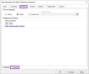 Na guia de catálogo do Eskolare, é possível gerenciar as marcas e os produtos que serão criados pelo integrador.