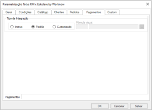 • Customizado: caso a estrutura padrão de Pagamentos não atenda a demanda da instituição é possível customizar esta criação através de uma fórmula visual.