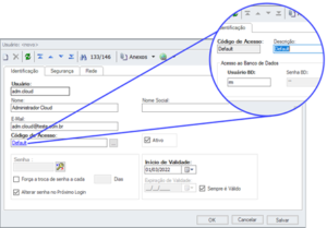 Serviços Globais > Segurança > Usuários > Selecionar Usuário > Código de acesso.
