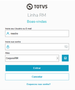 Para configuração de login e segurança da informação no Sistema da Linha RM.