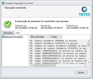 • No resultado, clique em Atualizar Integração Prova Fácil.