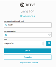 Então é necessário que um Usuário com acesso default ao executável da Linha RM.