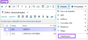 Dentro do cadastro do Curso, acesse o anexo Habilitações.