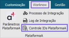 | TOTVS Educacional > Worknow > Agrupador Plataforma A > Controle IDs PlataformaA. |