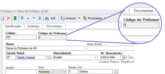 Importante: Lembrando que, este código faz referência ao campo Código do Professor e não o registro da PESSOA (Campo Código). |