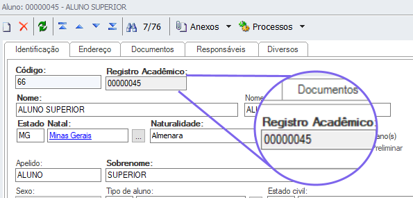 Quando é inserido o Registro Acadêmico (RA) de um aluno, por exemplo, 00000045, no campo “Aluno (RA)” sem especificar a Turma/Disciplina à qual o aluno será enturmado, a integração criará um registro para esse aluno em cada turma/disciplina existente no sistema.