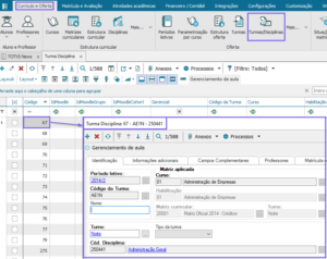 Contudo este não é o código da turma, ele faz referência ao número contido na barra de descrição da Turma/Disciplina.