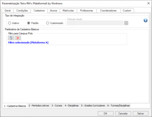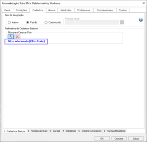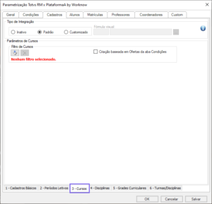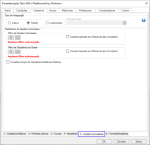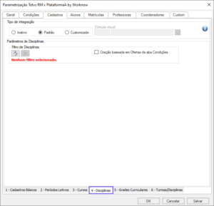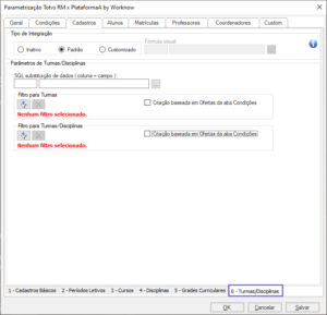 - Padrão: durante a integração, todos os elementos estabelecidos na categoria e na guia de Turmas/Disciplinas serão processados.