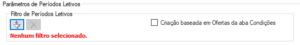 , uma tela será aberta com as configurações idênticas às definidas na seção “Cadastros Básicos” mencionada anteriormente. No entanto, os dados de busca serão específicos para o “Período Letivo“, permitindo a criação de filtros exclusivos para essa finalidade.