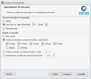 Importante: é possível agendar vários processos conforme a necessidade, desde que não ocorram simultaneamente e que o horário de término de um não coincida com o horário de início de outro. Esta medida evita sobrecarregar o sistema e garante a execução eficiente dos processos agendados |