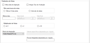 • Etapas/Provas Específicas: ao selecionar essa opção, irá criar grupo de notas de acordo com ID da etapa e ID da avaliação informado no campo “Valores específicos”.
