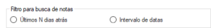 • Últimos N dias atrás: neste campo, especifique a quantidade de dias, que será levado em consideração juntamente com a data de início durante a integração de notas.